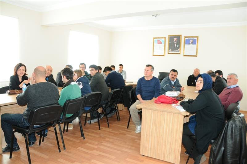 Hizmet için eğitimlerin online sistem üzerinden gerçekleştirildiğinin belirtildiği toplantıda hizmet içi bilgi sistemine, giriş, bilgi güncelleme, eğitim başvuru şartları, süreci konusunda bilgi verilirken uygulamalı olarak sisteme giriş ve kayıt işlemi yapıldı.